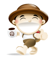 古樸的原木桌椅、豐富多元的產品、親切的招呼問候,就像品牌標誌上高舉咖啡杯、滿臉笑容的旺伯,